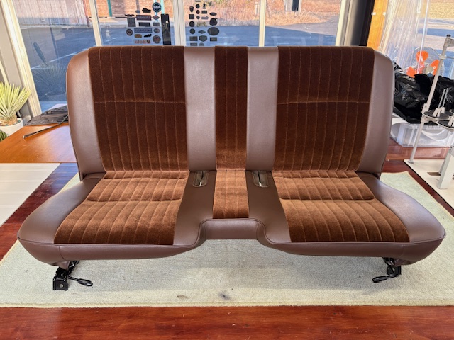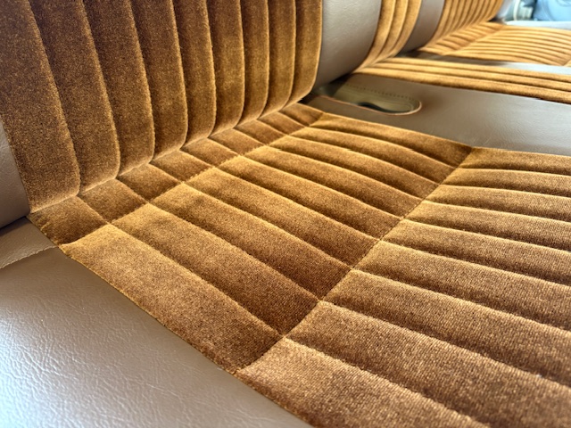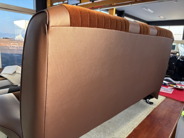 | 施工内容 | 純正のシートパターンはそのままに生地をレザーとモケットのコンビで張り替え。 コラムシフトをフロアシフトに変更された車だったので座面中央のウレタンを加工した後に形状に合わせてデザイン変更しています。 |
